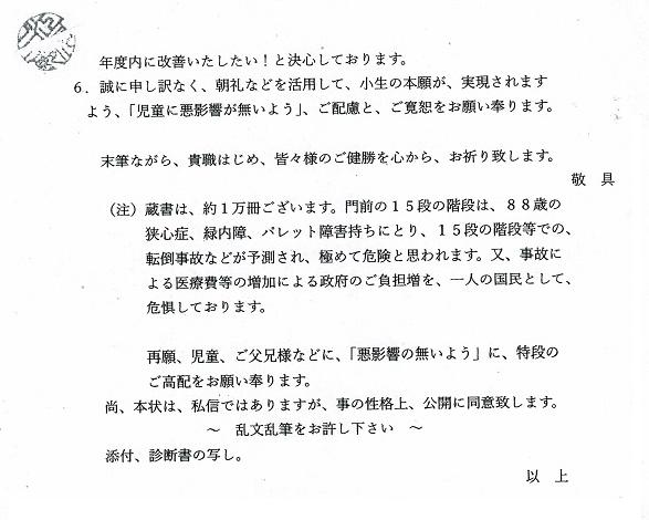 丂丂丂丂丂丂丂丂壞媥傒丄偐偪偐偪曕偒惵彮擭偺奆偝傫傊両 敪揥搑忋崙婎弨偺柍椏儂乕儉僗僥乕乮慺攽傑傝乯傪偛採嫙偄偨偟傑偡 俇侽嵨偱掕擭戅怑偟丄偦偺屻丄恖惗偺巚偄弌偲丄帺暘偺懱椡偺妋擣偵偲丄 擔杮嫶摴楬尦昗偐傜丄晉巑嶳嶳捀傑偱丄俁曽岦偐傜丄係夞搊嶳偟傑偟偨丄 惏揤懕偒側傜俇擔娫丄塉偺擔偑偁傟偽丄俈擔娫偱丄晉巑嶳偺嶳捀偵拝偒傑 偟偨丅偦偺懠丄戝嶃擔杮嫶偐傜丄搶嫗偺擔杮嫶摴楬尦昗傑偱丄媽搶奀摴傪 儐僯僙僼偁偰偺曞嬥妶摦傪偟側偑傜丄俀俀擔娫偺僲儞價儕偐偪曕偒傪妝偟 傒傑偟偨丅丂丂丂 丂丂丂丂 偲偰傕慺揋側椃偱偟偨丄偙偺妝偟傒傪暘偐偪崌偄偨偔偰丄丄丄丄 枹棃偺扴偄庤偱偁傞惵彮擭偺奆偝傫偵丄柍椏偺儂乕儉僗僥乕乮敪揥搑忋崙 婎弨乯傪偛採嫙偟偰丄奆偝傫偺戝愗側恖惗偺巚偄弌偲乽椘丄偐偰乿偵側傟 偽丄偲婓朷偟偰偄傑偡 丂乗丂偐側傜偢帠慜偵偛楢棈偔偩偝偄丂乕丂丂丂丂丂丂丂丂丂